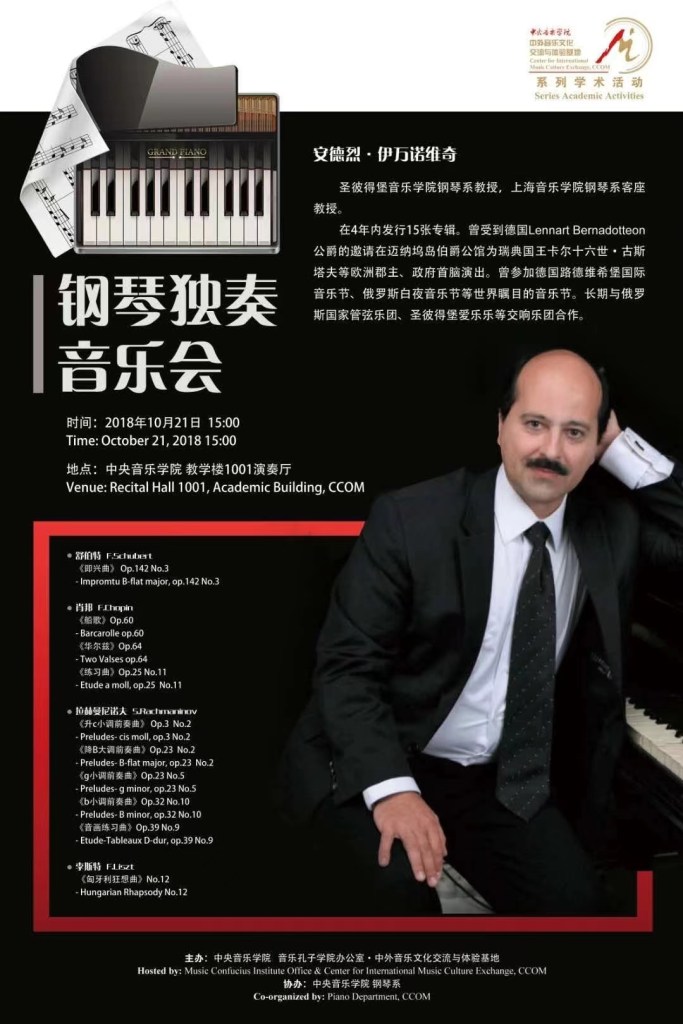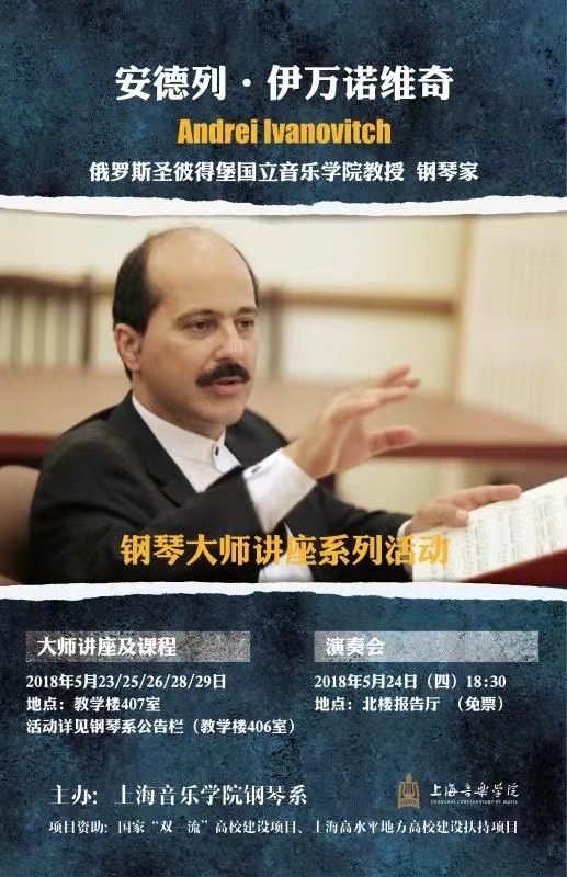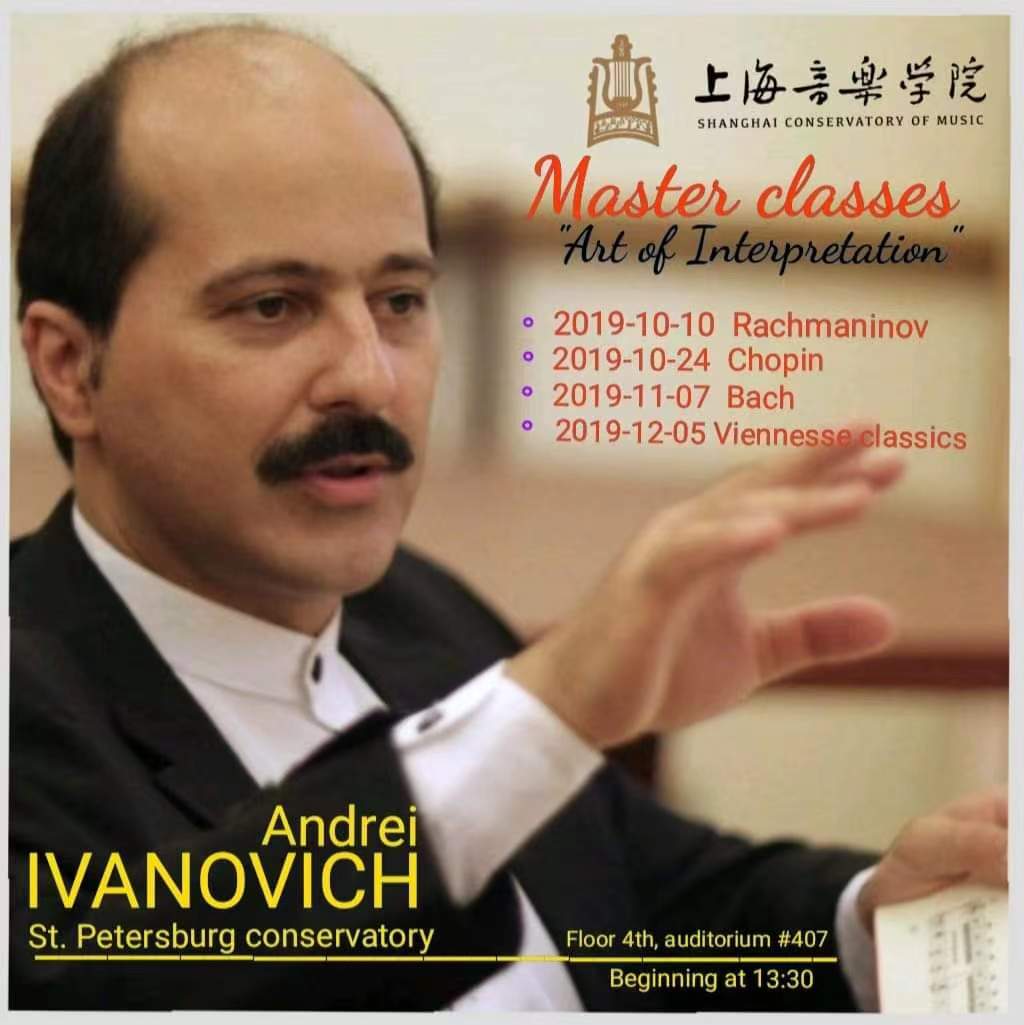 Andrei Ivanovich happily combines his concert activities and teaching. He leads the piano classes at St. Petersburg state conservatory, Harbin Conservatory and gives master classes on regular basis at Shanghai conservatory and Central conservatory, works as a jury member of international piano competitions and festivals.