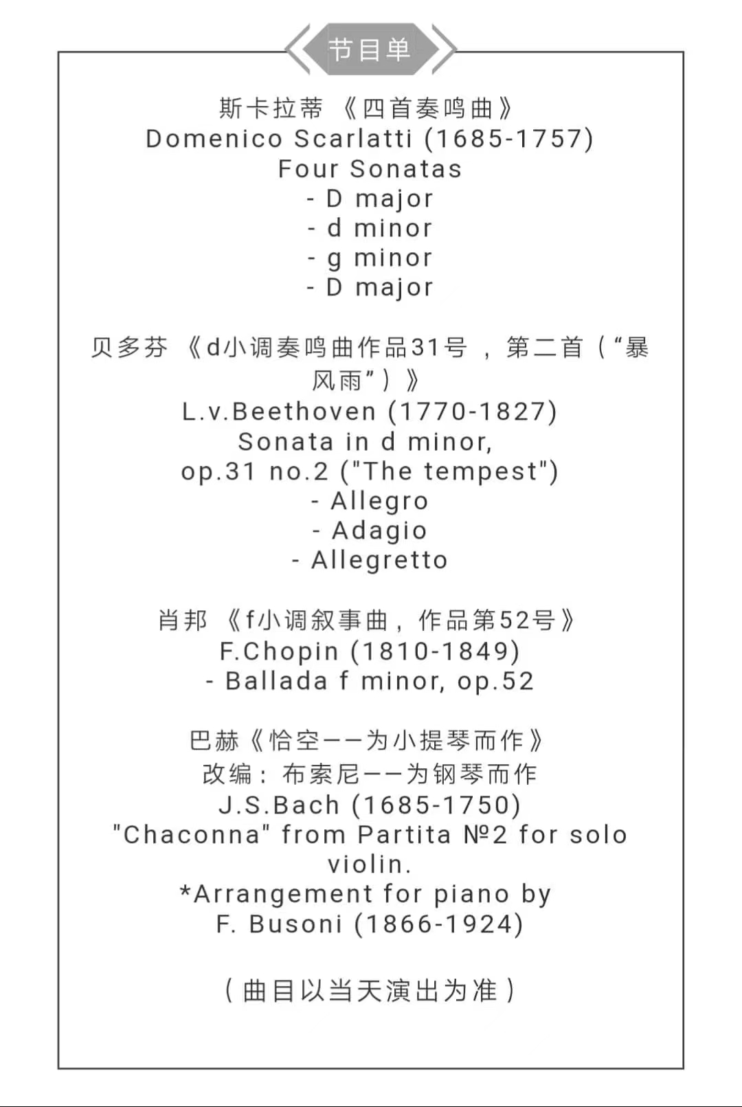 ~ Piano recital at Harbin Philharmony * Schubert-Chopin-Rachmaninov